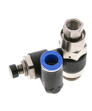 Flow control silencer G 1/8" - 6 mm, pilot-operated check valve